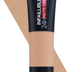 Das Infaillible 24H Matte Cover Make-up von L‘Oréal Paris zeichnet sich durch eine sehr starke Deckkraft aus. Dabei verleiht die Foundation der Haut ein natürliches Finish. Die hochpigmentierte Formel sorgt für einen ebenmäßiger wirkenden Teint mit Matt-Effekt. Hautunregelmäßigkeiten wie Muttermale oder Sommersprossen können im Handumdrehen kaschiert werden. Das Erscheinungsbild der Haut wird optisch korrigiert – ganz ohne Maskeneffekt. Die seidig-leichte, langanhaltende Textur ist bis zu 24 Stunden wisch- und wasserfest und färbt nicht ab. Die cremige Textur ermöglicht einen hohen Tragekomfort.