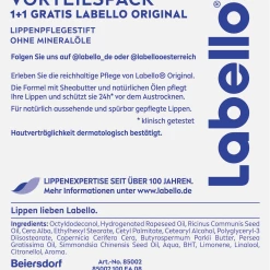 Erleben Sie die reichhaltige Pflege von Labello Original. Die Formel mit Sheabutter und natürlichen Ölen pflegt Ihre Lippen und schützt sie 24h* vor dem Austrocknen. Für natürlich aussehende und spürbar gepflegte Lippen.