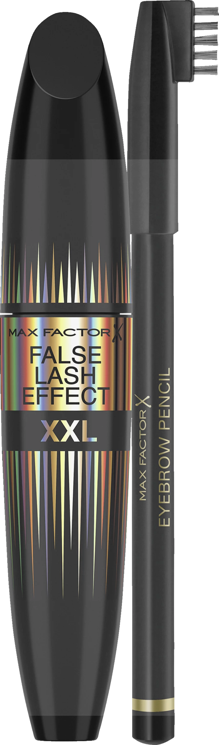 Die Max Factor False Lash Effect XXL Mascara Black zaubert lange und voluminöse Wimpern und pflegt mit Arginin, Panthenol und Vitamin E. Der Max Factor Eyebrow Pencil sorgt für ein definiertes Finish.