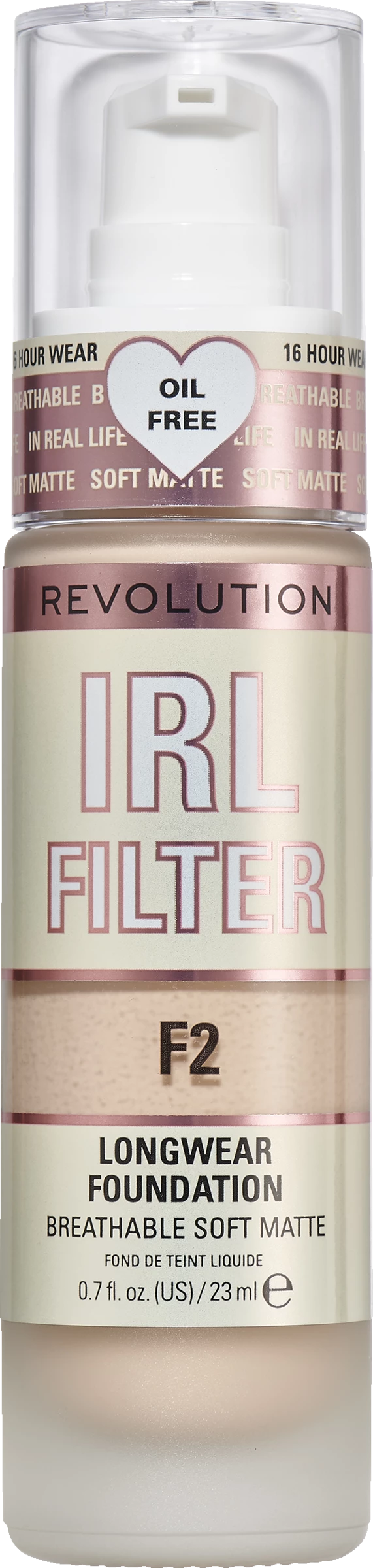 Weg mit dem Filter! Wir stellen die Revolution IRL Filter Longwear Foundation vor! Das ist Filter in einer Flasche! Diese mittelstark bis stark aufbaubare Foundation hat eine atmungsaktive, matte Formel mit weichem Fokus und ist in 30 Farbtönen erhältlich. Angereichert mit Niacinamid, ist sie ölfrei, glanzfrei, cremefest, lebensecht und wischfest und bietet 16 Stunden Tragezeit vom Tag bis zur Nacht. Die hohe Deckkraft mit 20% mehr Pigmenten macht es einfach, die Foundation je nach gewünschter Deckkraft aufzubauen und zu verblenden. In einem luxuriösen Glasflakon mit eingebauter Pumpe bietet diese Foundation Präzision und bessere Kontrolle, sie ist Ihr echter Filter, was will man mehr?! Erhältlich in 30 Farbtönen: F0.1 – Für die hellsten Hauttöne mit einem rosa Unterton. F0.2 – Für helle Hauttöne mit leicht gelblichem Unterton. F0.5 – Für helle Hauttöne mit rosa Unterton F1 – Für helle Hauttöne mit neutralem Unterton F2 – Für helle Hauttöne mit rosa Unterton F3 – Für helle Hauttöne mit kühlem Unterton F4 – Für helle Hauttöne mit rosa Unterton F5 – Für helle Hauttöne mit einem goldenen Unterton F6 – Für helle/mittlere Hauttöne mit neutralem Unterton F6.5 – Für helle/mittlere Hauttöne mit gelbem Unterton F7 – Für mittlere Hauttöne mit neutralem Unterton F8 – Für helle/mittlere Hauttöne mit einem warmen Unterton F8.2 – Für mittlere Hauttöne mit gelbem Unterton F8.5 – Für mittlere Hauttöne mit gelbem Unterton F9 – Für mittlere Hauttöne mit pfirsichfarbenem Unterton F9.5 – Für mittlere Hauttöne mit olivfarbenem Unterton F10 – Für mittlere Hauttöne mit goldenem Unterton F10.5 – Für mittlere Hauttöne mit einem warmen goldenen Unterton F11.2 – Für tiefere, mittlere Hauttöne mit einem olivfarbenen Unterton F12 – Für mittlere/dunkle Hauttöne mit einem neutralen Unterton F12.5 – Für mittlere/dunkle Hauttöne mit einem goldenen Unterton F13 – Für mittlere/dunkle Hauttöne mit goldenem Unterton F13.2 – Für dunkle Hauttöne mit orangefarbenem Unterton F13.5 – Für mittlere/dunkle Hauttöne mit neutralem Unterton F13.7 – Für dunkle Hauttöne mit gelbem Unterton F14 – Für dunkle Hauttöne mit einem kühlen Unterton F15 – Für dunkle Hauttöne mit rotem Unterton F16 – Für dunkle Hauttöne mit einem warmen Unterton F18 – Für dunkle Hauttöne mit einem warmen Unterton F20 – Für sehr satte, tiefe Hauttöne mit einem warmen Unterton. Vegan und frei von Grausamkeiten.