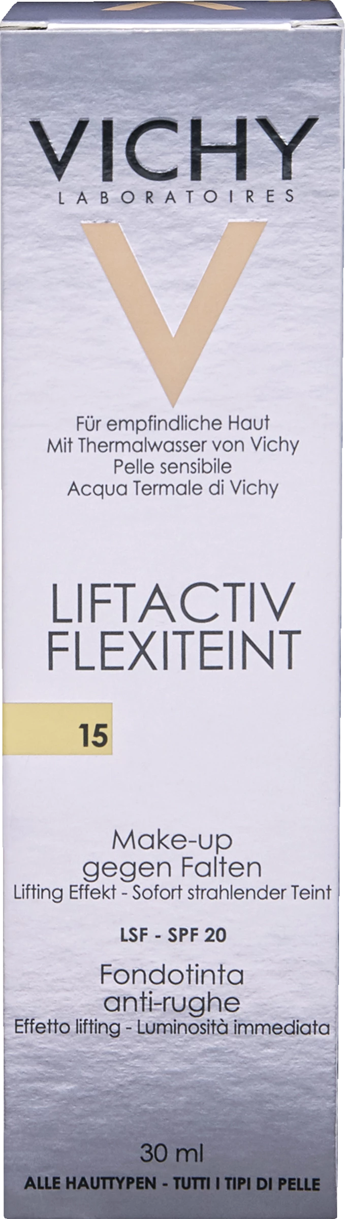 Das Anti-Falten-Make-up mit straffender Silikon-Textur sorgt für einen sofortigen Lifting-Effekt und einen strahlenden Teint – ohne unerwünschten Masken-Effekt. Dank ihrer elastischen Eigenschaften mildert die straffende Silikon-Textur Falten und passt sich der natürlichen Mimik Ihres Gesichts an. Unebenheiten werden geglättet, der Teint wirkt ebenmäßig und strahlend – den ganzen Tag.